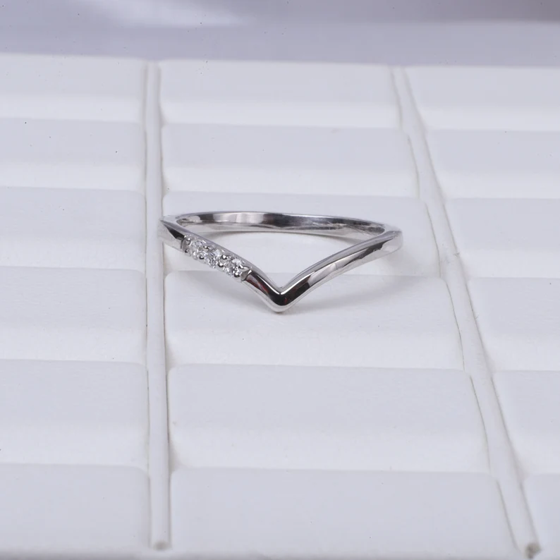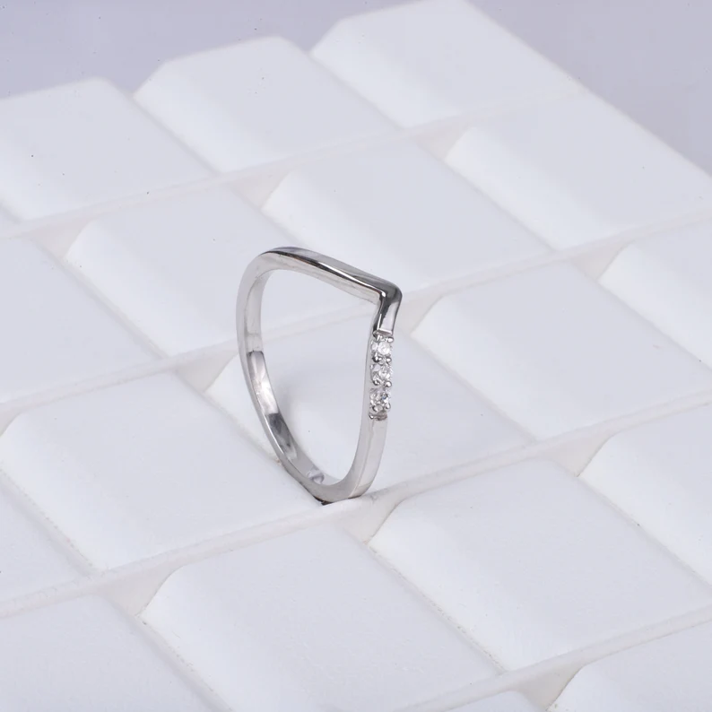 CZ Diamond Band, Three Stone Band, V Shape Band, Delicate Band, Art Deco Band, 925 Sterling Silver, Anniversary Gift For Her, Matching Band