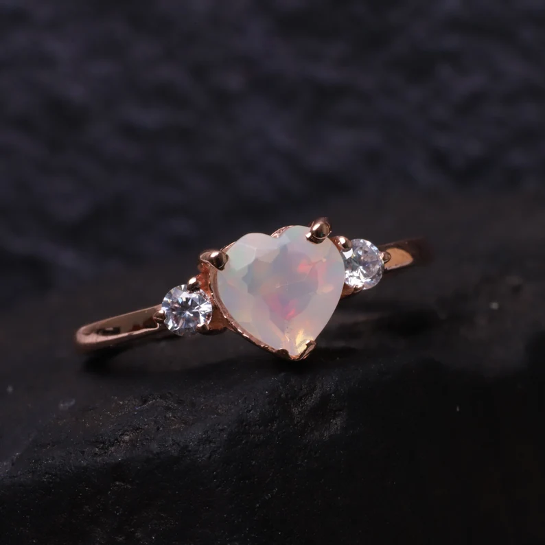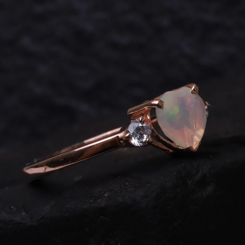 Opal Engagement Diamond Ring Heart Shape Opal Wedding Ring 14k Rose Gold Unique Ring Bridal Anniversary Gift October Birthstone Gift For Her Details