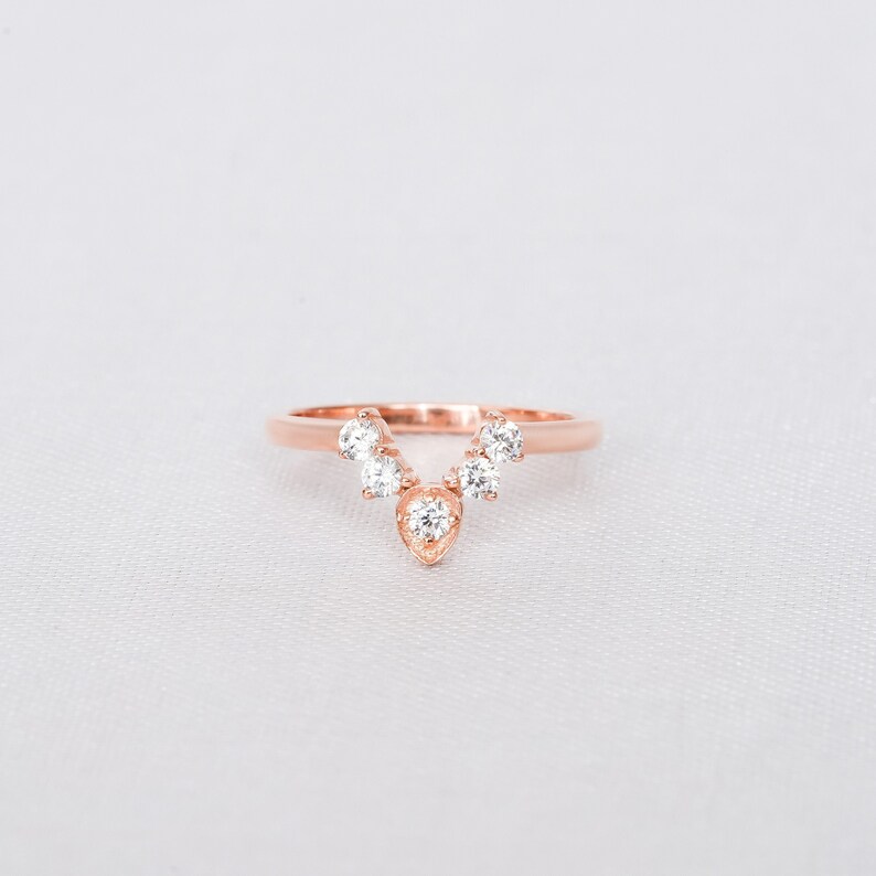 CZ Diamond Dainty Stone Band, Five Stone Band, V-Shaped Delicate Wedding Band, 14k Rose Gold, Anniversary Gift, Stackable Band, Purpose Ring