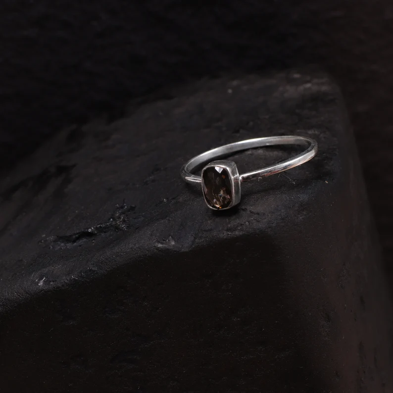 Smokey Topaz Ring Handmade Jewelry Brown Gemstone Ring Hippie Ring Solid Silver Jewelry Vintage Ring Dainty Statement Ring Gift For Her