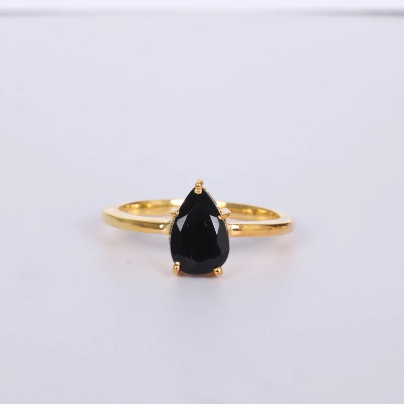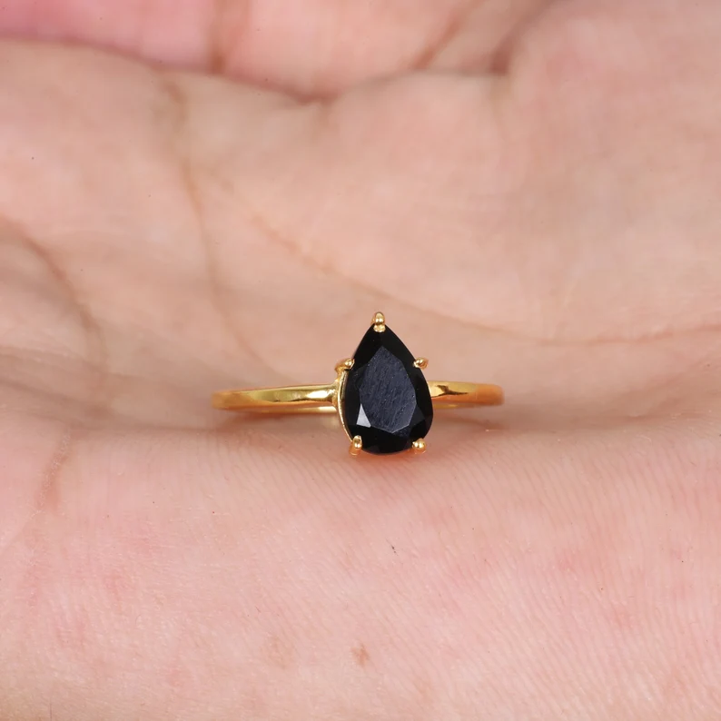 Pear-Shaped Black Onyx Wedding Ring Onyx Ring for Women Engagement Ring Bridal Ring 14k Solid Gold Stacking Ring Gift For Her Vintage Ring