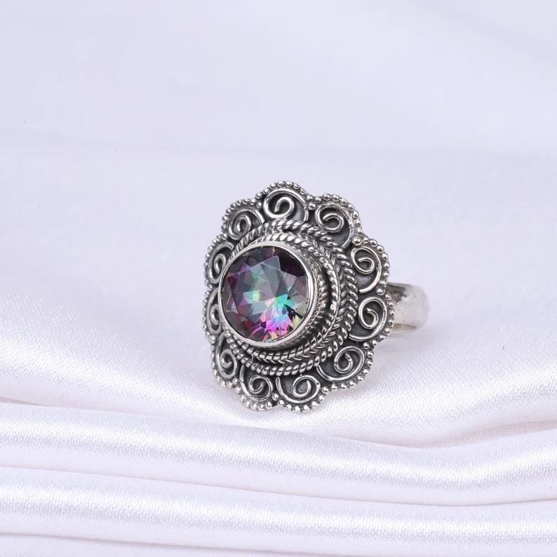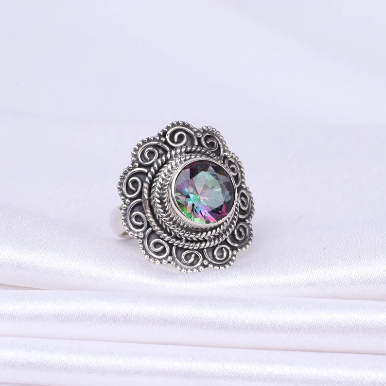 Mystic Topaz Ring 925 Solid Silver Ring Handmade Jewelry Multi Color Gemstone Ring Minimalist Crystal Ring Statement Ring Boho Dainty Ring