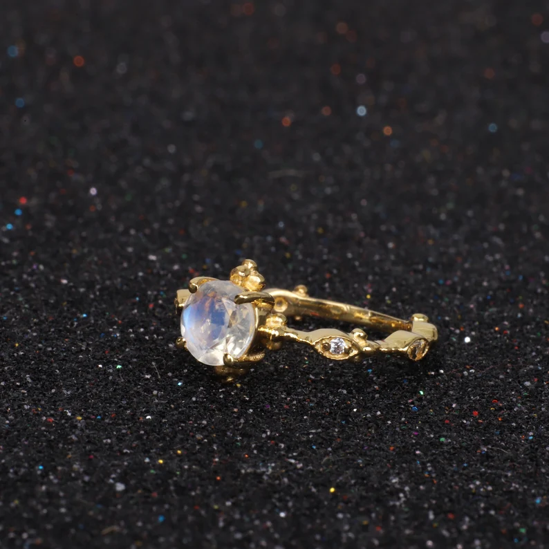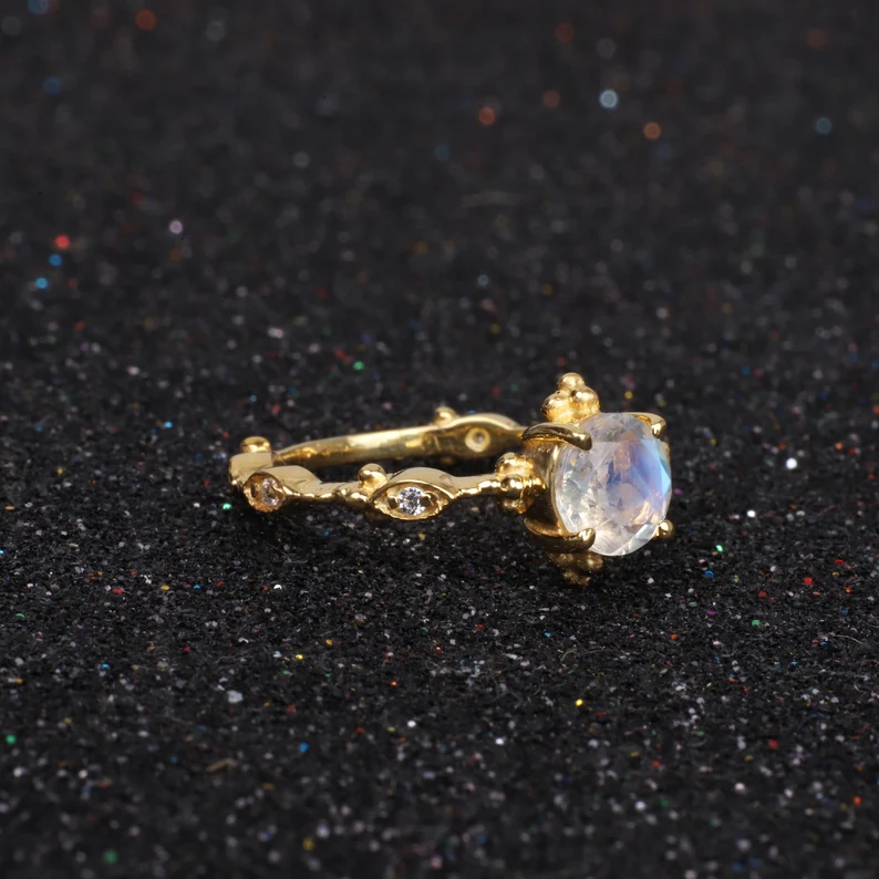 Dainty Moonstone Wedding Diamond Ring, 14k Solid Gold Ring, Women's Jewelry, June Birthstone, Blue Fire Gemstone, Christmas Gift For Love