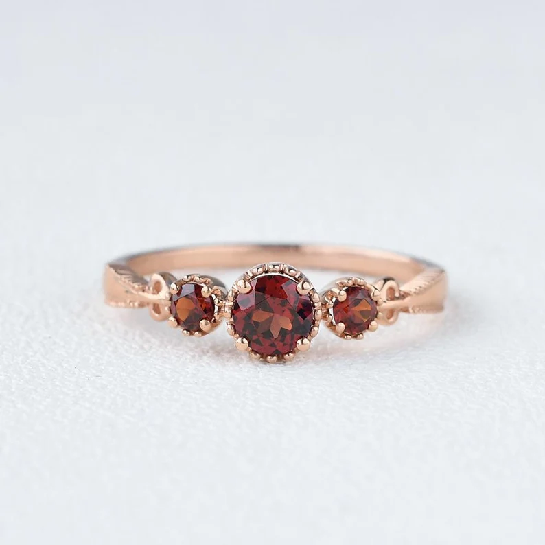 Tiny Garnet Ring, Round Cut Garnet Ring, Minimalist Ring, Dainty Ring, Birthstone Ring, 14K Gold Stacking Ring, Gifts For Her Promise Ring