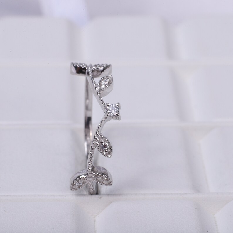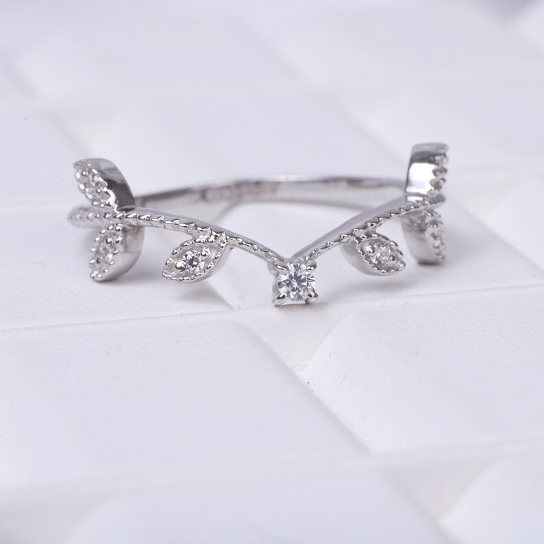 CZ Diamond Leaf Design Band, Curved Band, Women's Jewelry, 925 Sterling Silver, Christmas Gift For Daughter, Matching Band, New Year Jewelry