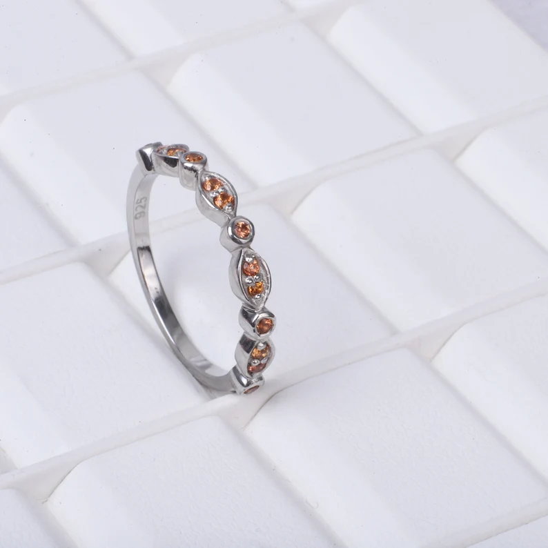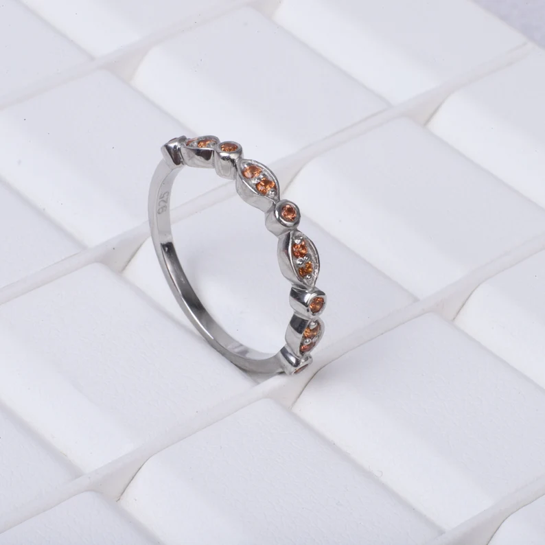 Half Eternity Orange Sapphire Band, Art Deco Band, 925 Sterling Silver, September Birthstone, Bridesmaid Gift, Matching Band, Bridal Gift