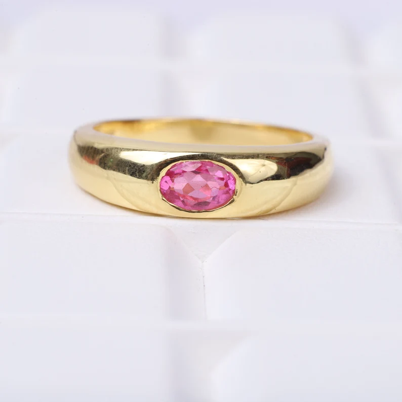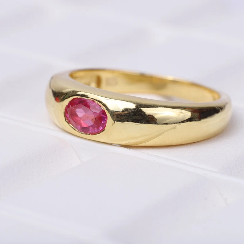 Vintage Ruby Wide Band Ring, Wedding Ring, 14k Solid Gold, Christmas Gift, Unisex Ring, July Birthstone, Promise Ring, New Year Jewelry Details