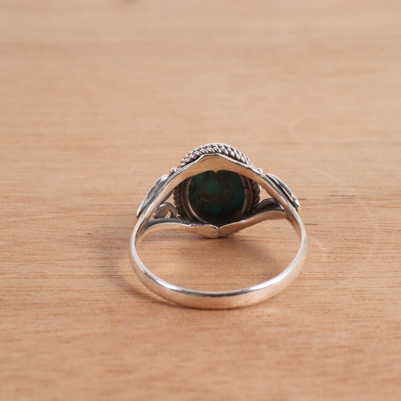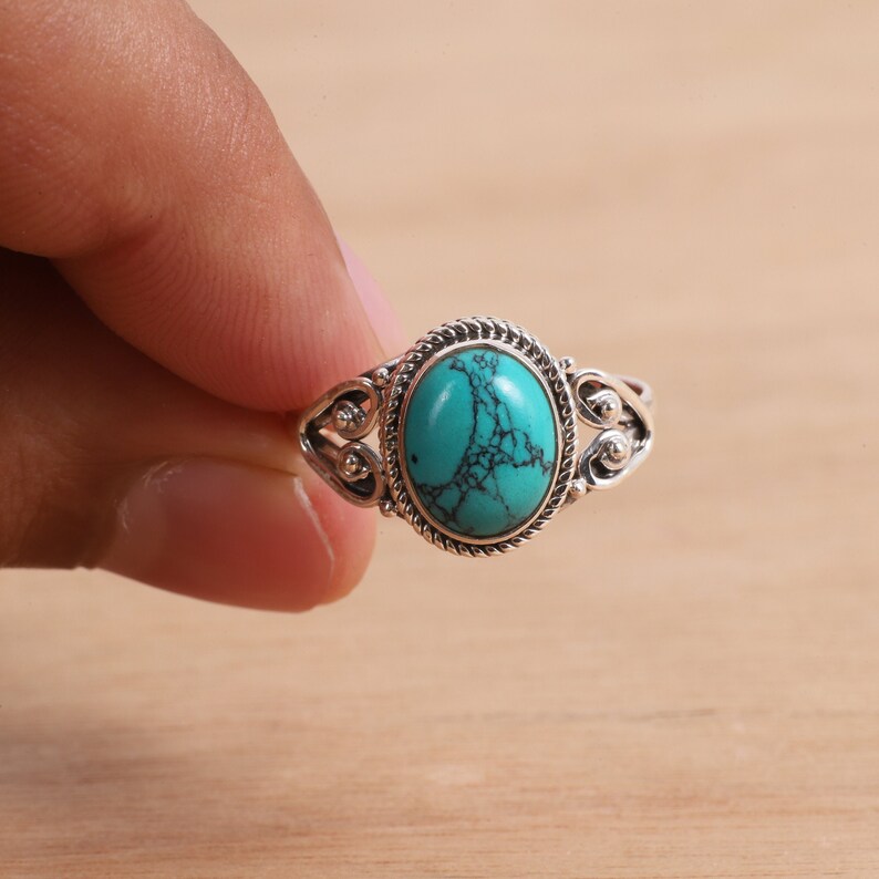 Blue Turquoise Ring Bohemian Ring Antique Band Ring Oval Shape Blue Gemstone Christmas Gift Handmade Jewelry 925 Solid Silver Ring For Her