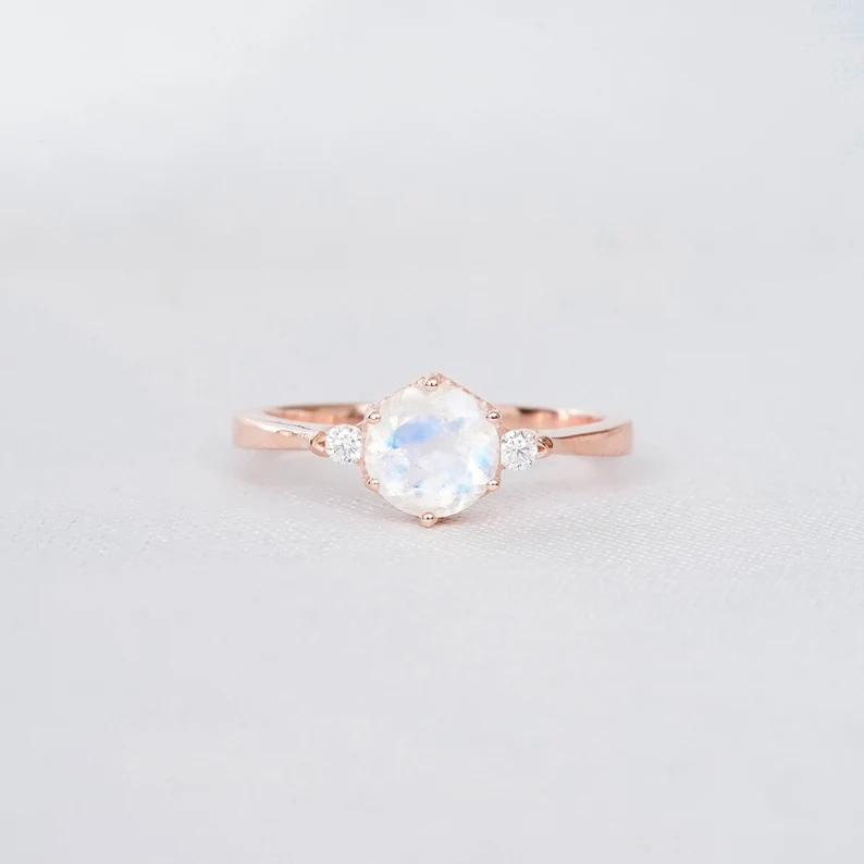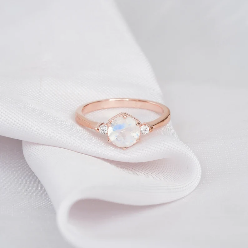 Blue Fire Moonstone Wedding Ring 14k Rose Gold Ring June Birthstone Vintage Ring Anniversary Gift Promise Ring For New Year, Handmade jewelry