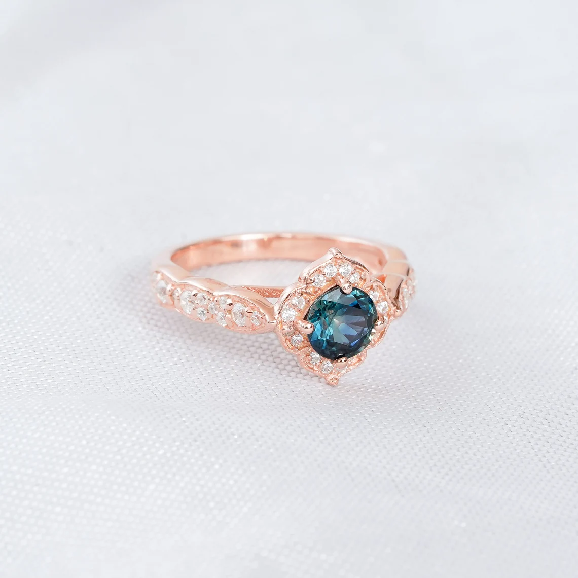 Teal Sapphire Engagement Ring, Natural Sapphire Diamond Ring, Blue Greenish Gemstone Ring, 14k Rose Gold Ring, Bridal Ring, Anniversary Gift